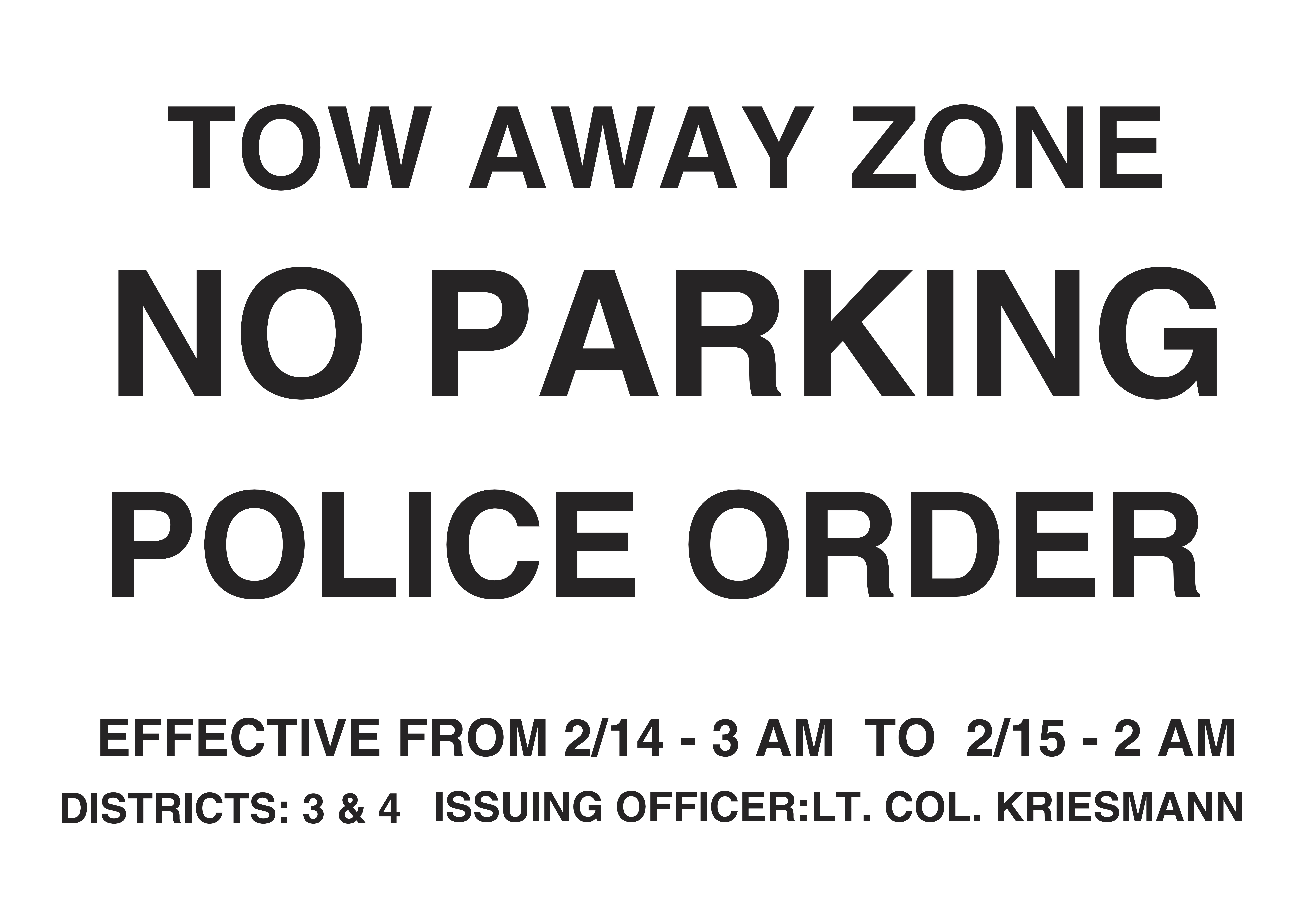 The Red Zone is demarcated by WHITE “No Parking Police Order” signs. If you see a white sign posted nearby, you are in the Red Zone. Do not park in the Red Zone or you will be ticketed and towed at your own expense.